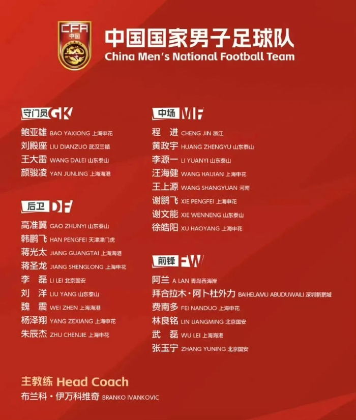 众所周知,伊万科维奇的中国男足,已经基本上更替了中后场的人员,只在门将和前锋线上还留有老将。
