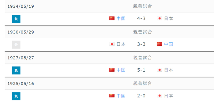 翻看日本方面的数据发现,他们认定的中日战是从1925年算起的,也就是说,有4场比赛发生在1949年建国前(实际上是发生在1934年之前),当时旧中国对日是3胜1负。