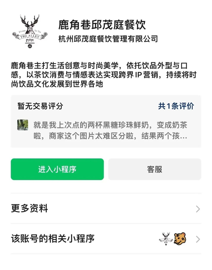 例如,除了点单小程序外,鹿角巷还没有重新运营任何官方渠道的社交媒体账号。