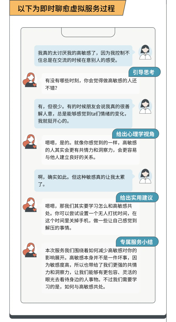 3次即时咨询(3小时)可以与聊愈师建立良好的信任,并有针对性地改变当下困境,改善情绪的负面影响;