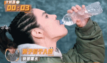《萌探2024》里他和黄子韬比赛喝水,看谁喝得快,向佐拿起瓶子往嘴里猛灌,看起来很有豁出去的架势。