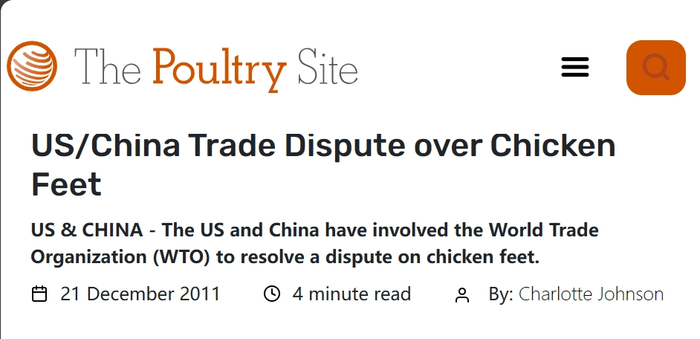 然而正是这种天作之合,让鸡的爪子成为了国际贸易战争中最被低估的大杀器。