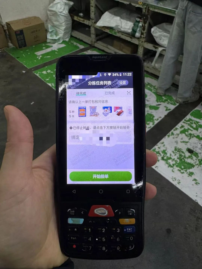PDA指挥着分拣员的每一步操作。(图/作者 摄)在所有的麻烦中,用户投诉是骑手和分拣员最害怕的事情,因为只要被投诉,基本没有申诉成功的可能。而投诉意味着扣钱以及被店长谈话,扣的钱为每单10~20元不等。有的门店还规定,一旦被投诉,分拣员要被罚抄工作手册。