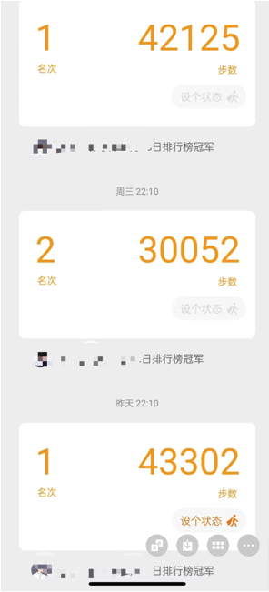 我问小刘最开始会感觉身体吃不消吗,他告诉我,“现在也吃不消,每天都腰酸背痛”,“夏天的时候,顾客买水会成箱成箱地买”,但他有些轻描淡写。他给我看了他的步数,几乎都在三万多到四万多步,蝉联微信步数榜榜首。