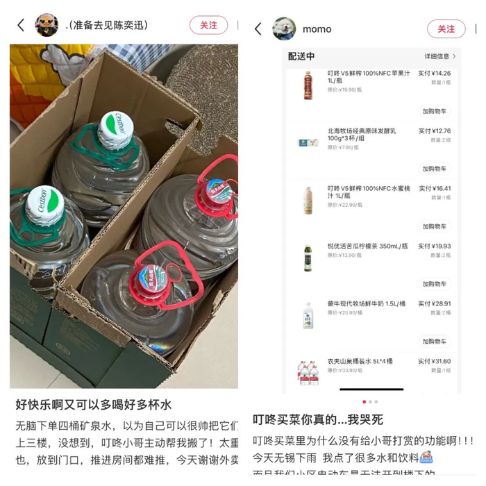每到夏天,用户会成箱成箱地买水。(图/社交软件截图)大力兔说,她之所以这么拼也是没办法,每个月还有房贷要还。但如果没有能够吃苦的毅力,就算想要减肥的决心再大,也很难度过最开始的适应期。