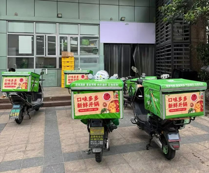 和普通超市不一样,生鲜电商门店一般窝在不显眼的商圈背面,在临近居民区的偏僻角落。招聘中介在试岗前就提醒我,如果找不到门店,就仔细找找附近有没有绿色的门店招牌,门口停着许多穿绿色衣服的骑手。