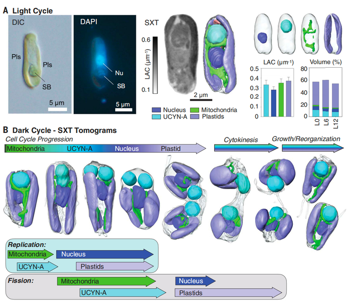 通过对数十个处于细胞分裂不同阶段的贝氏布拉藻细胞进行成像,他们发现,在整个藻类细胞分裂之前,Nitroplast已经一分为二,通过这种方式,一个Nitroplast从亲本细胞传递给它的后代,就像其它细胞器一样。