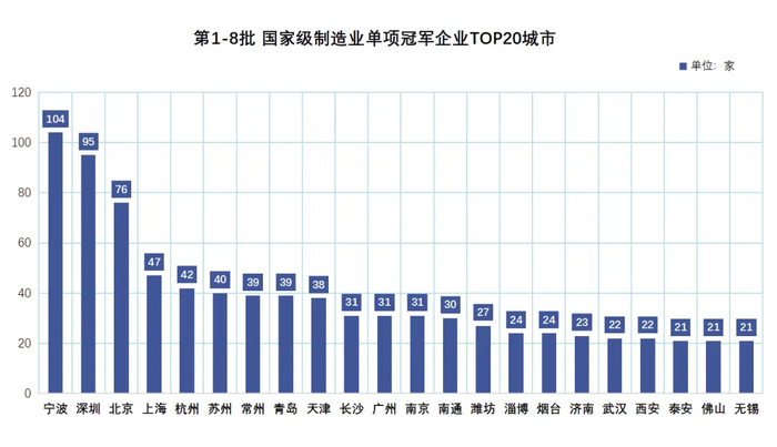 制图:城市财经;数据:宁波市统计局宁波的产业强悍,还表现在拥有一批单项制造业冠军企业。