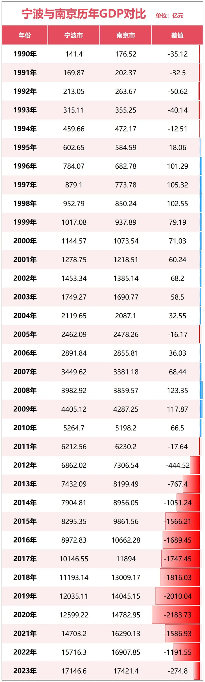 从2024年的表现来看,宁波与南京的差距在不断缩小。