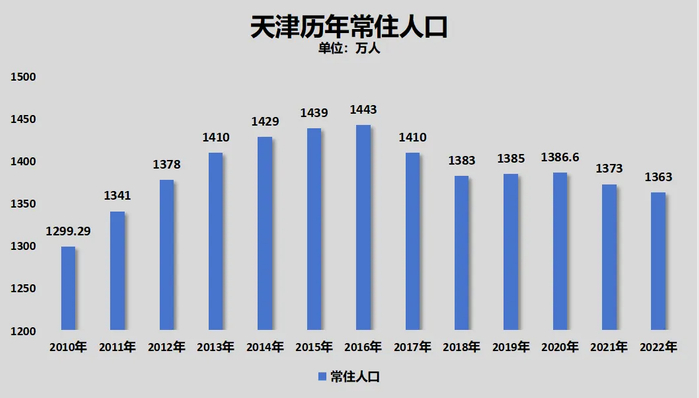 天津过去三年的人口增量分别是-13.6万人、-10万人、1万人。