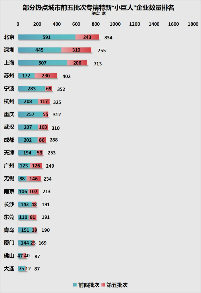 而天津,前五批次专精特新“小巨人”企业数量253家,比宁波少99家。