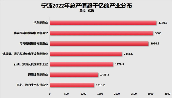 此外,按照工信部划分的41个工业大类,宁波总产值超过千亿的产业数量高达7个,千亿产业总产值合计1.59万亿元。