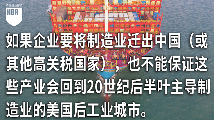 第三,如果企业要将制造业迁出中国(或其他高关税国家),也不能保证这些产业会回到20世纪后半叶主导制造业的美国后工业城市。“过去生产纺织品、鞋类和家具的地区,其20世纪的工厂每产出一美元产品所需劳动力,相对于如今的技术水平而言要多得多,”汉森说。寻求投资新制造设施的企业有很多选择,无论是考虑越南或危地马拉等国家,还是在美国寻找最优方案,昔日的制造业中心可能无法夺回这些岗位。