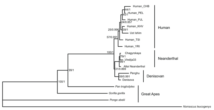 2008 年,科学家在西伯利亚南部的丹尼索瓦洞穴中发现了一块大约 4 万年前的指骨碎片。2010 年,Svante Pääbo 教授(2022 年诺贝尔生理学或医学奖得主)团队在 Nature 发表论文【1】,从这块骨头中提取了完整的线粒体 DNA 基因组,从而揭示了一种此前未知的古人类——丹尼索瓦人。