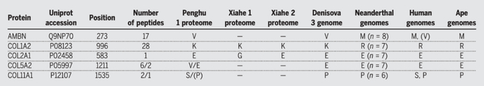 在这项研究总,研究团队花费了两年多时间,精心改进了从古代骨骼化石中提取古蛋白质的技术,他们用酸从“澎湖 1 号”的臼齿表面分离出蛋白质片段,并用酶从下颌骨中提取蛋白质。他们发现了其中两段蛋白质具有独特的氨基酸序列突变(AMBNM273V、COL1A2R996K),而这与 2008 年在西伯利亚丹尼索瓦洞穴中发现的丹尼索瓦人指骨的基因序列相匹配。因此,研究团队确定这块下颌骨来自一名丹尼索瓦人,通过牙釉质中的 AMELY 蛋白,确认其为男性。