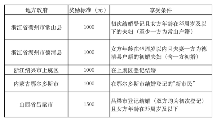 目前,已经出台催婚政策的地方政府相对来说还比较少(有些是作为催生政策组合的一项政策形式出现的),下面列出了其中的一部分(见表2)。