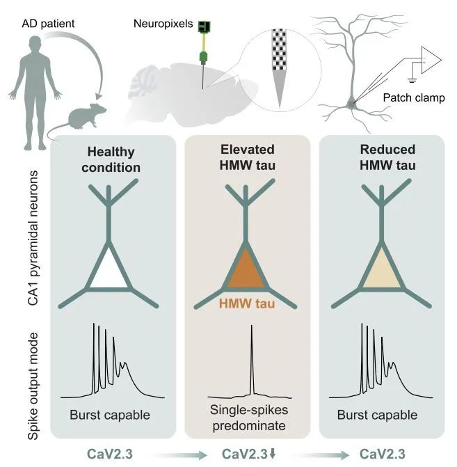 并且,当研究者在转基因小鼠中用药物抑制可溶性tau蛋白的产生时,海马神经元中CaV2.3的表达显著增加,表明这种影响神经元高频放电模式的钙通道受损与可溶性tau蛋白有关。