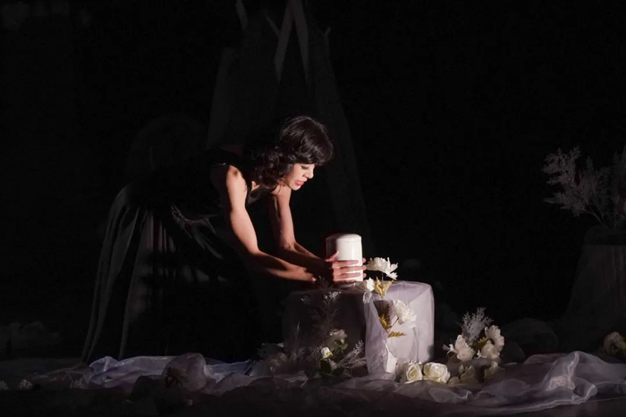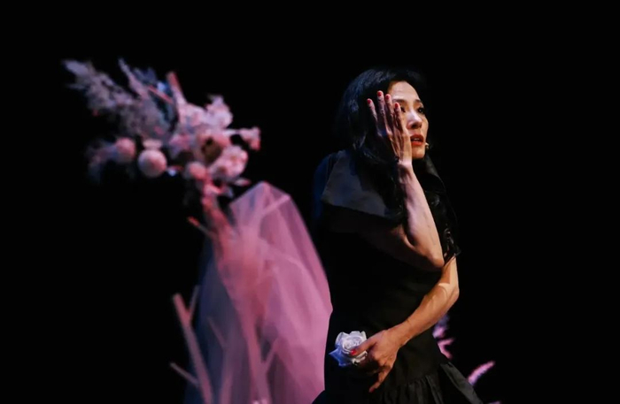 《约定·香奈儿》里我把花的元素摆在布景上,投影里有花的盛放和枯萎,这是我想通过戏剧表达的生命力。