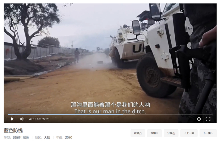 网传视频的片段来自中国首部海外维和战地纪实电影《蓝色防线》。