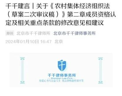 关注这个议题的性别平等推动者也自发将这个消息广而告之。林丽霞与千千律所的同事们,第一时间提交了修改建议,被上万人转发。李慧英撰写万字长文《集体成员资格确认需要纳入法治轨道》。