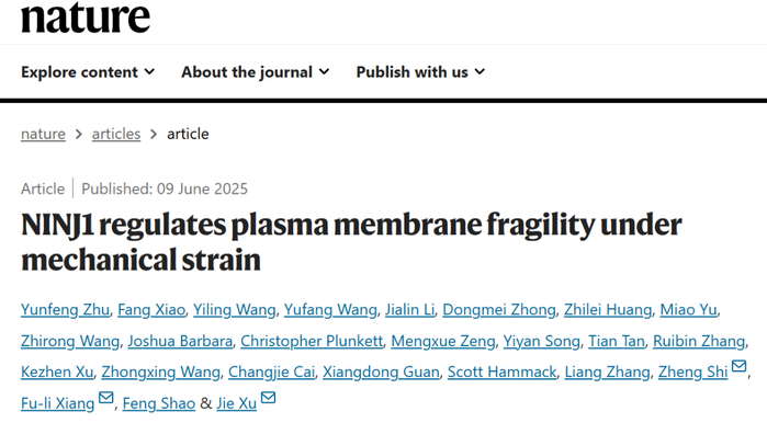 中山大学徐杰、向芙莉和罗格斯大学Shi Zheng等人通过高通量遗传筛选,鉴定在机械应激下调节细胞膜完整性的关键基因,并深入研究NINJ1在其中的作用机制。相关内容以“NINJ1 regulates plasma membrane fragility under mechanical strain”为题发表在《Nature》上。