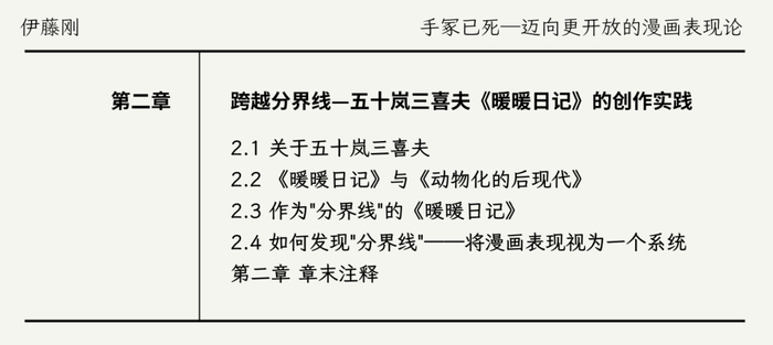 关于《暖暖日记》这部作品的变化及五十岚的创作实践,我认为已经进行了相当充分的阐述。然而仅凭这些分析,尚不足以将其与整个漫画领域的变迁联系起来,更不足以将其视为"分界线"的表征。我们必须阐明这种观点是基于哪些理论依据才得以成立的。这种论证过程,正是构建漫画评论与研究"理论模型"的重要一步。