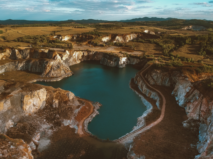 梨树县孟家岭小天池由废弃矿坑改造而成,池水因矿物质作用呈现碧绿色。(图/图虫创意)