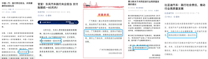 2025年6月10日-6月11日,多家车企集体发声,承诺将供应商的付款账期缩短到60天以内
