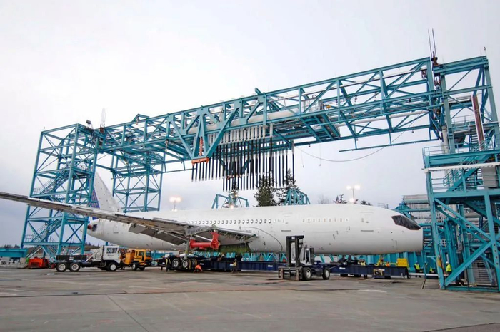 ▲ 787飞机疲劳试验实际上在实验中,787的机身机翼结构要做到比实际寿命多2倍,也就是说它要做到3倍寿命,只有做到这点,才能证明这架飞机的设计是合理的、安全的。