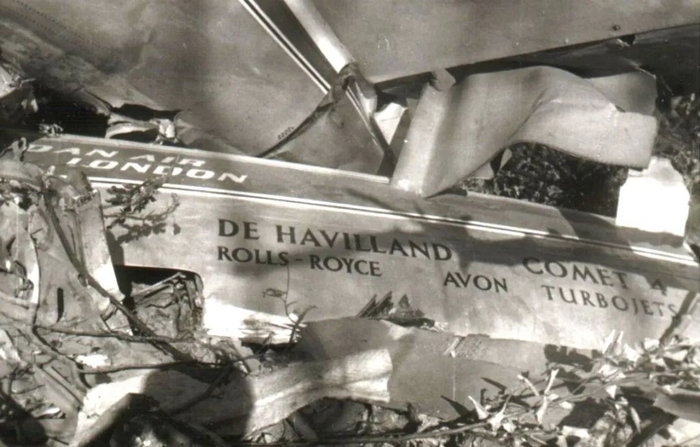 ▲ 爆裂解体的彗星号飞机这张图片更加惨烈,飞机完全解体了。