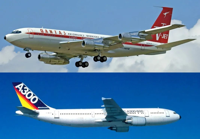 ▲ 707和空客A300考虑疲劳问题之后,这个时期出现的典型飞机就是707和空客A300,这是非常有名的两款商用飞机。