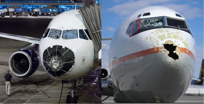 ▲ 恶劣天气对飞机的破坏还有天气因素的影响,比如冰雹、雷电,我们也会做一些相应的处理。