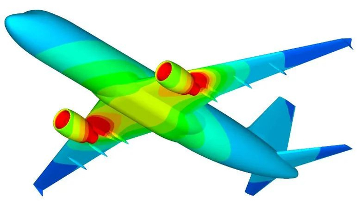 ▲ 飞机受力可视化大家知道声音是振动的,如果我们所处的空间是真空的,大家就听不到我说话的声音。因为声音是质点振动,质点振动就会产生应力的影响。所以声音也是一种载荷,也是我们要关注的。从设计的角度,我们需要考虑这些问题。
