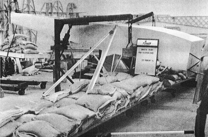 ▲ 地面实验使用沙袋模拟分布载荷受限于当时的技术条件,在地面做试验的时候,他们通常用的是沙袋,这些东西我们现在都可以经常见到。