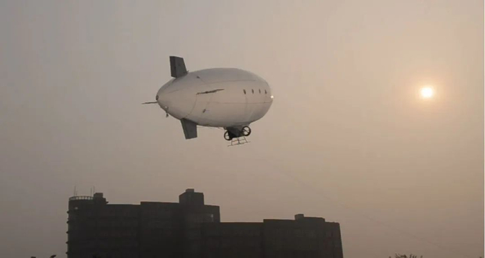 ▲ 中国民用航空飞行学院自制无人飞艇我们学校里也有这么一群人,大家看到的这几个无人机都是学生自己设计的,他们还设计了一些太阳能飞机,还有无人飞艇,有点像大海里面的水母,看起来蛮漂亮的。