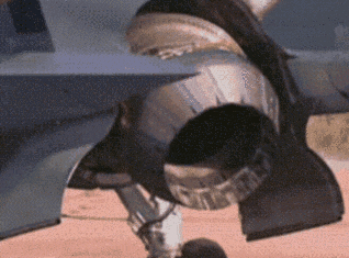 我们能看到它整个起飞的过程,尾喷管向下偏转,前方的升力风扇打开,另外在机翼上还有两个喷气口,用来控制飞机的横向平衡。飞机开始起飞了。我们甚至能看到在起飞的时候,它内部计算机在调节推力的大小。