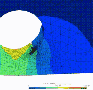 ▲ 计算模拟裂纹扩散过程我们来看一看,在解决疲劳问题的时候,用一个试验机来测试材料的性能,有了性能信息之后,我们就可以利用数值计算方法,模拟裂纹从开始产生到不断扩展的过程。