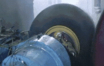 ▲ A380刹车装置还有更重要的,减速用的刹车,这是A380的刹车装置。大家可以从视频中看到轮毂里面在冒火,它测试的也是一个极限的刹车状态,经过这些试验之后,才能确保飞机飞行的时候是安全的。