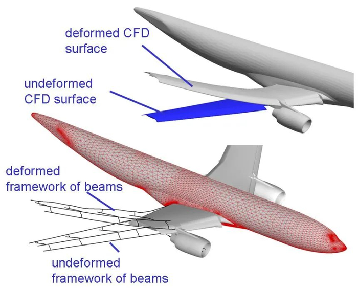 高速飞行的时候,如果机翼太软,机翼会产生振动。振动会包含两个模态,一个是弯曲的模态,还有一个是扭转的模态,两个模态会叠加在一起。如果机翼在空中出现颤振,那么飞机就会在很短的时间内解体。