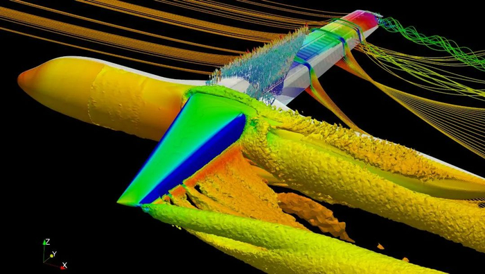 从设计角度来讲,大家可以看到,我们现在借助计算机技术和计算流体力学技术,可以很准确地计算出一架飞机在穿越空气的时候,它表面的速度场是怎样分布的。