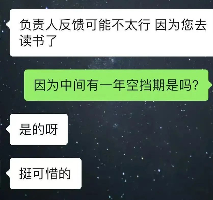 还有人说:你读书断档了一年,你工作经验就要减去两年。