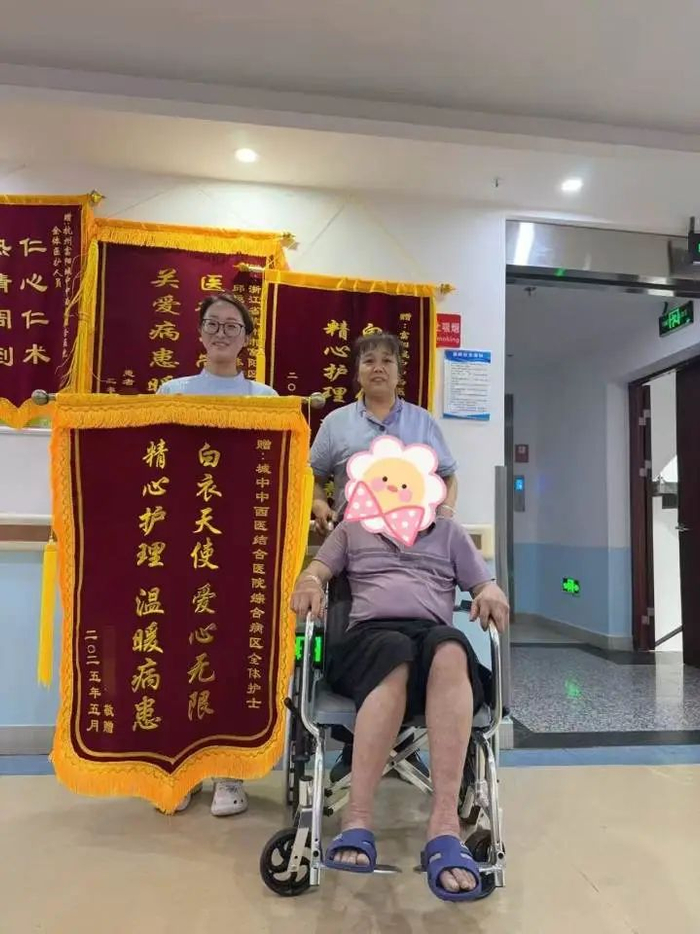 如今,李老爷子已可以独立完成简单的如厕、穿衣进食等动作,还能去活动区和其他的老年人一起看电视、聊天。他特送来锦旗,感谢富阳城中中西医结合医院的医护人员。