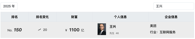 不管从哪个角度来看,王兴的这笔投资都是一笔极其成功的投资,且王兴的减持行为应该不会对理想股价产生较大的影响。作为美团的创始人,王兴不仅仅是一个成功的创业者,也是一个优秀的投资人,根据2025年胡润全球富豪榜显示,王兴以1100亿身家,位列全球150位,排名较去年上升20位。