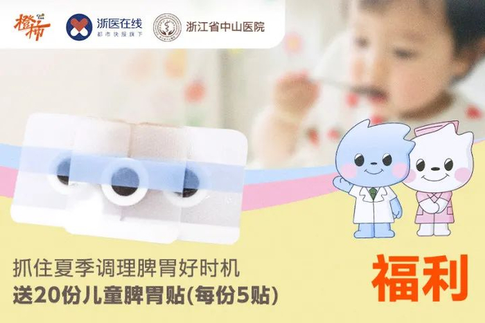 针对脾胃虚弱的孩子,浙江省中山医院特别送出20份特制脾胃贴,每份含5贴。由于孩子的脾胃还在发育中,脾胃贴用药缓和,主要加入党参、白术(zhú)、莪术(é zhú)、三棱等药材,具有益气健脾和消食导滞作用,可双向调节,针对大多数脾胃虚弱的孩子有较好的作用。