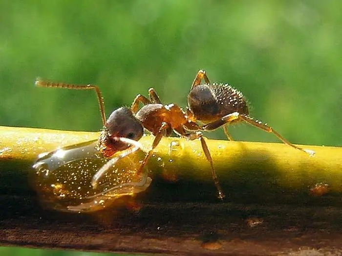 在这种“技术背景”下,有一些蚂蚁甚至直接进化出将群体中一些个体作为储存食物的工具,这种蚂蚁就是蜜罐蚁。