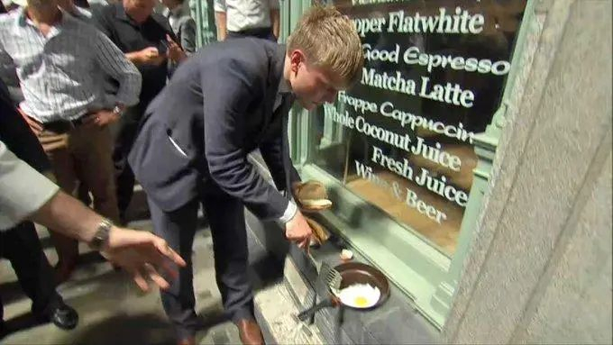 前来参观死亡光线的游客络绎不绝,还有人当场做起了实验,戴着墨镜在聚焦的太阳光下煎荷包蛋和加热面包,最后居然还成功了。