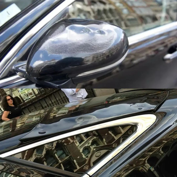 后视镜和车窗附近的地方发生“变形”,像是被暴晒了一样,车里还有一股塑料烧焦的臭味。