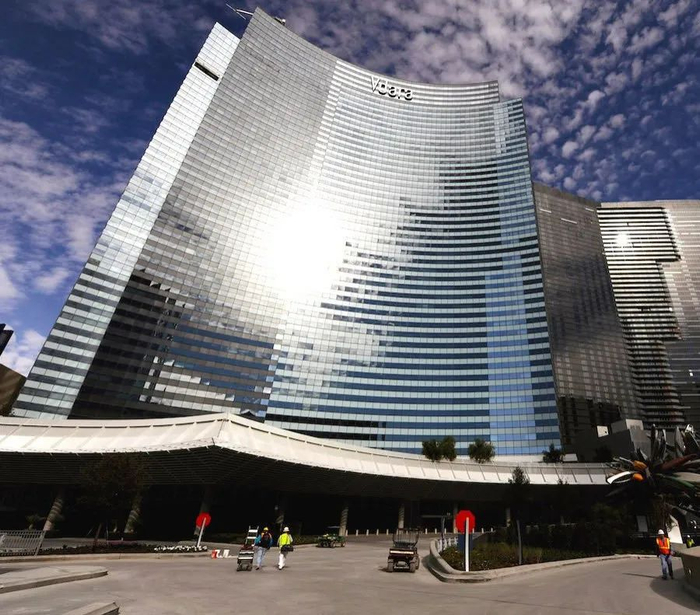 对讲机大楼存在缺陷,它的设计师拉斐尔·维诺里也被拉出来了,一查,发现类似自带死亡光线的大楼,他设计了2栋,还有一栋是位于拉斯维加斯的维达拉酒店 (Vdara hotel)。