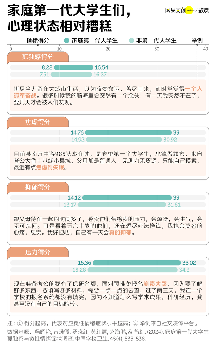 更值得注意的是,农村出身的第一代大学生,受孤独和负面情绪的折磨更严重 [9]。