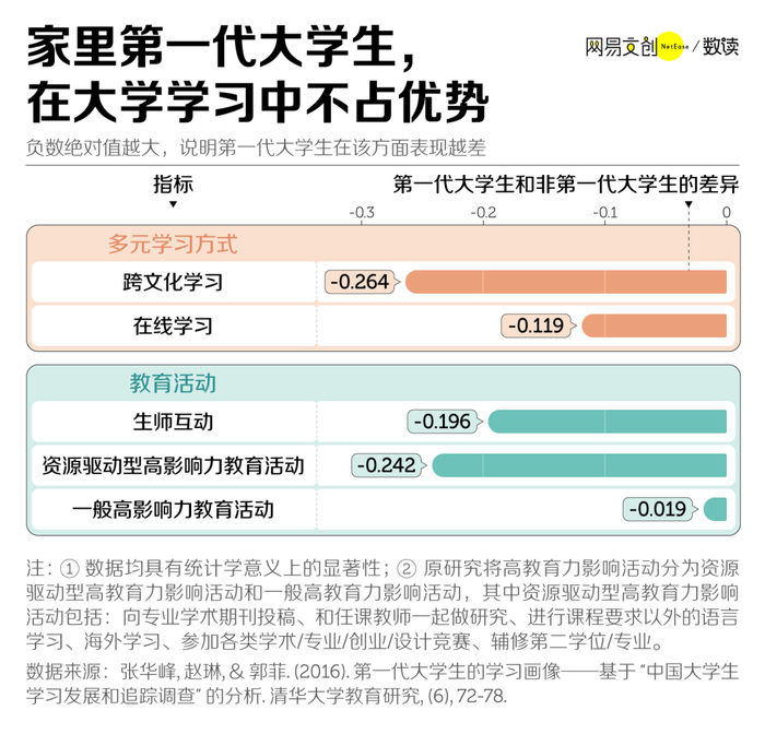 不过需要注意,该研究界定第一代大学生时,关注的是父母受教育程度,无论家族里其他人学历如何,只要父母都没接受过大专及以上教育,就能算作第一代大学生 [6]。